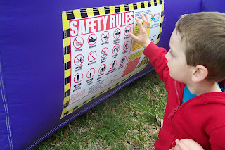 At the church Easter egg hunt, he spent about five minutes figuring out each safety icon on the bounce house before getting in. A few weeks before, while exiting the library, he noticed the no guns and no smoking signs. "Look, Ma!" he said, "No shooters and no cannons!" Our little backseat driver will also remind us of rules if necessary. "Keep both of your hands on the steering wheel!"